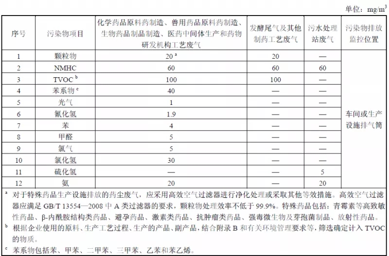 《制藥工業(yè)大氣污染物排放標準》