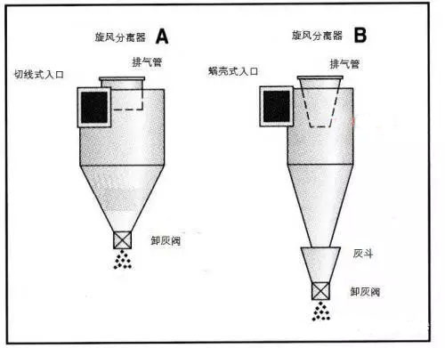 旋風除塵器的形狀是影響分離效率的重要因素。例如,如果入口尺寸,錐體尺寸,排氣管,以及排放口不一樣,兩個相同筒徑的旋風分離器會有相當大的效率差別。
