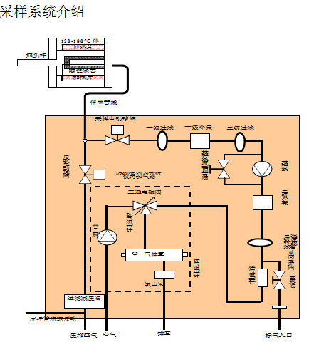 樣氣通過取樣探桿進入到取樣探頭內,經過陶瓷濾芯過濾后,除去樣氣中的