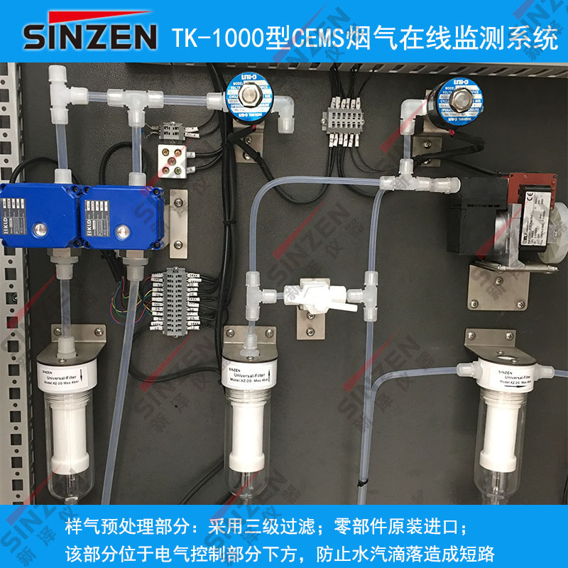 煙氣在線監(jiān)測系統(tǒng)中的采樣系統(tǒng)主要包括三級精密過濾器、冷凝器、伴熱管線、二級精密過濾器以及采樣探頭等組成部分,一旦采樣系統(tǒng)發(fā)生堵塞,就會導(dǎo)致采樣的流量比較低,后果比較嚴重。有關(guān)部門在發(fā)現(xiàn)采樣系統(tǒng)堵塞時,首先要確定堵塞的具體部位,可采用以下方法:由于伴熱管線和采樣探頭通常都是在煙囪或者煙道等距離地面較高的地方,檢查不方便,所以可以先對分析機柜內(nèi)部的三級精密過濾器、二級精密過濾器以及冷凝器等進行仔細的檢查。但是要求對機柜內(nèi)部檢查的人員具有較高的專業(yè)素質(zhì),必須要熟悉采樣系統(tǒng),確保排查結(jié)果準確。