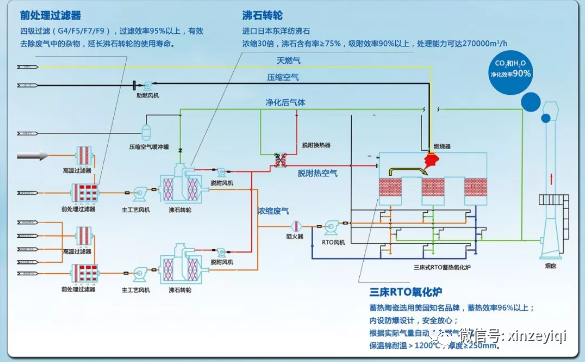 本次方案工藝選用轉(zhuǎn)輪濃縮+RTO。
