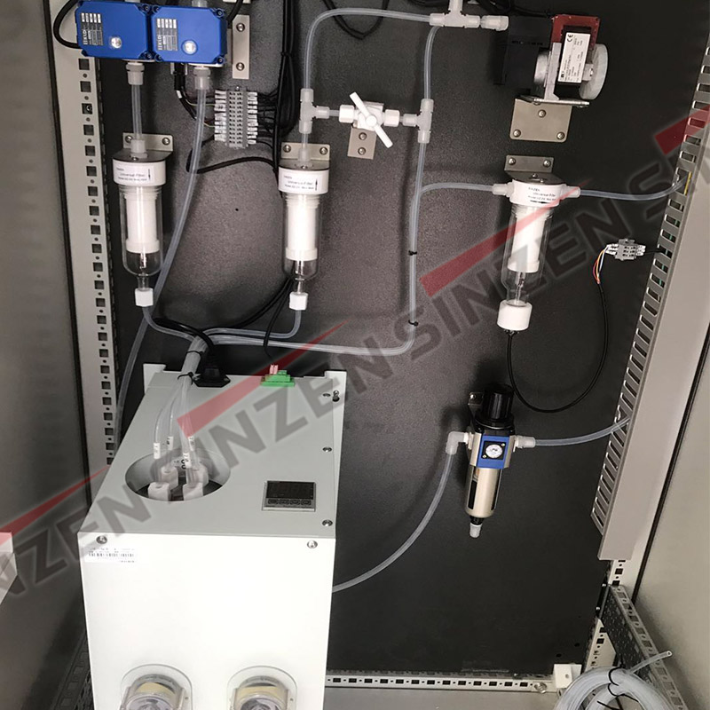 緊接著到了下面,把量程氣通到采樣球閥的上面那根管,最終顯示的數(shù)據(jù)也是差了好多。隨后跳過(guò)冷凝器,直接在第三過(guò)濾器的進(jìn)口通氣,過(guò)了幾分鐘之后,分析儀數(shù)據(jù)和標(biāo)氣瓶上的值相對(duì)穩(wěn)定。回過(guò)頭來(lái)再去找冷凝器的問(wèn)題,先是把量程氣通到二進(jìn)口。過(guò)了幾分鐘發(fā)現(xiàn)數(shù)據(jù)也能夠相匹配,然后我再往前找,在冷凝器的一進(jìn)口通氣。過(guò)了幾分鐘之后數(shù)據(jù)差了許多,隨后判斷出問(wèn)題不是冷腔的問(wèn)題,那就是蠕動(dòng)泵的問(wèn)題,正好我隨身帶了一個(gè)蠕動(dòng)泵。將他換好之后,再次往讓球閥的位置進(jìn)行標(biāo)氣。幾分鐘碳看分析儀上的數(shù)據(jù),完全可以和標(biāo)氣瓶上的值相匹配,最后判斷為蠕動(dòng)泵進(jìn)行排水的過(guò)程中,沒(méi)有把水排出去,導(dǎo)致管路中堵塞。大部分的氣沒(méi)有到分析儀。蠕動(dòng)泵換好之后,又把量程氣在各個(gè)地方通了一遍,均沒(méi)有問(wèn)題。都能夠相 匹配。準(zhǔn),讓現(xiàn)場(chǎng)負(fù)責(zé)人聯(lián)系銷(xiāo)售購(gòu)買(mǎi)80%的量程氣。